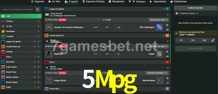 A aposta 5Mpg oferece aos jogadores a experiência mais conveniente de apostas em eSports!